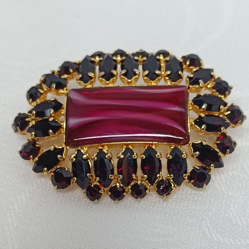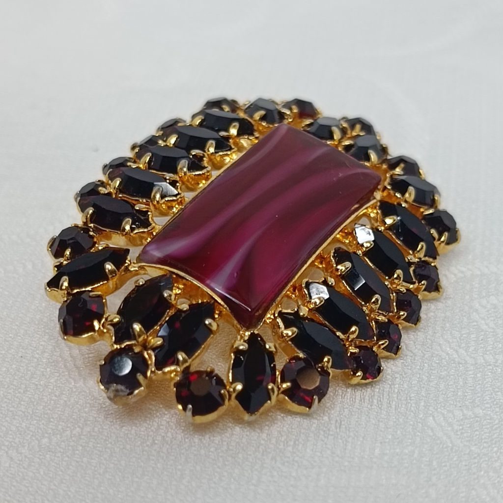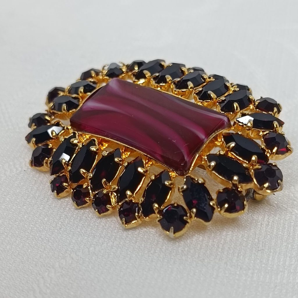 Брошь, гранатовое стекло, Чехия.