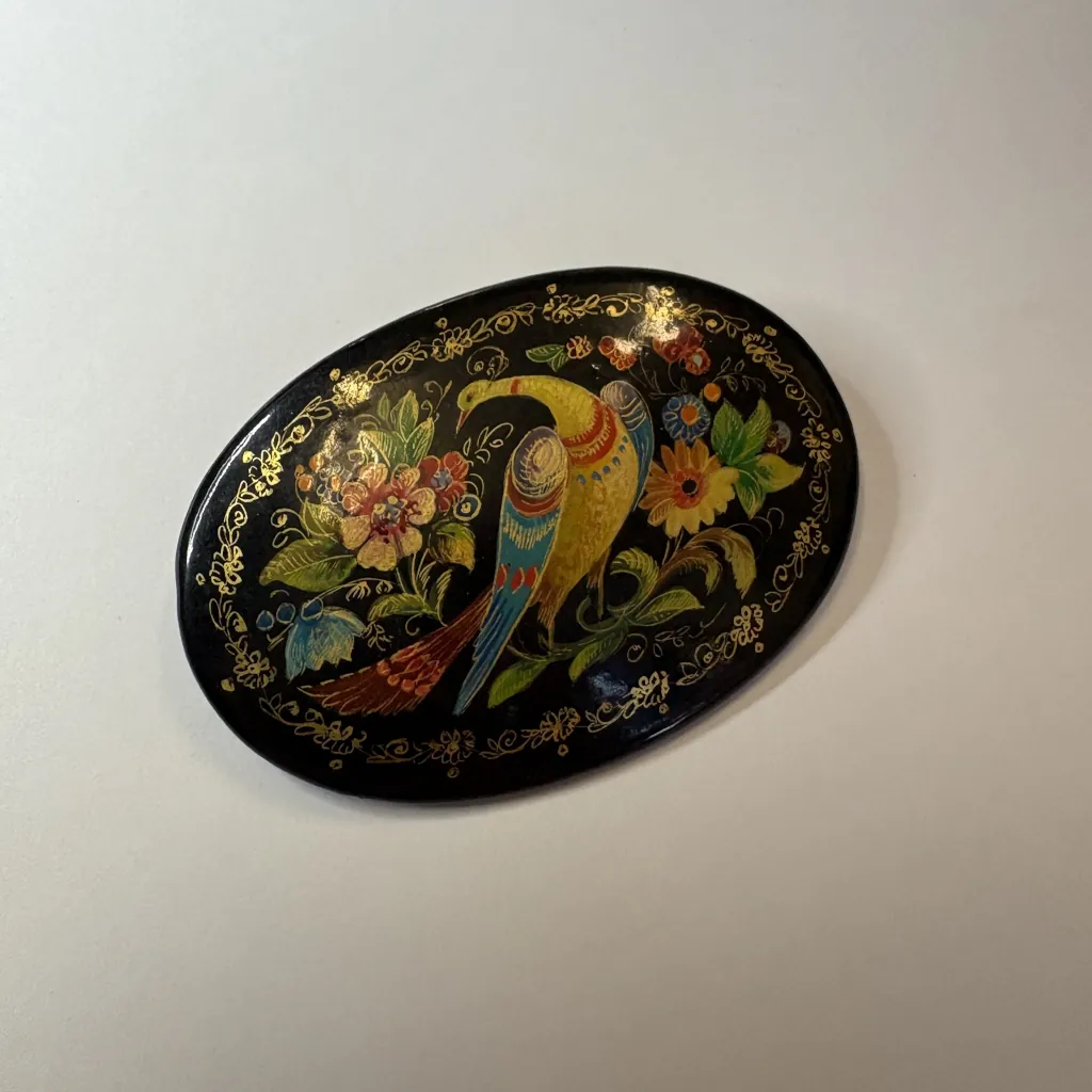 Брошь “Жар-Птица”, папье-маше, ручная роспись, лак, СССР, 1960-1991гг.