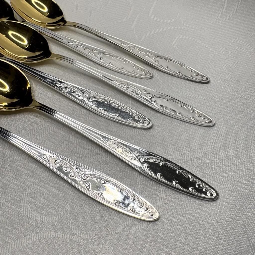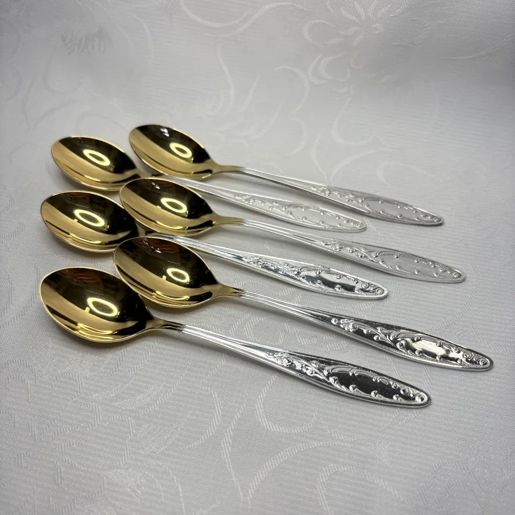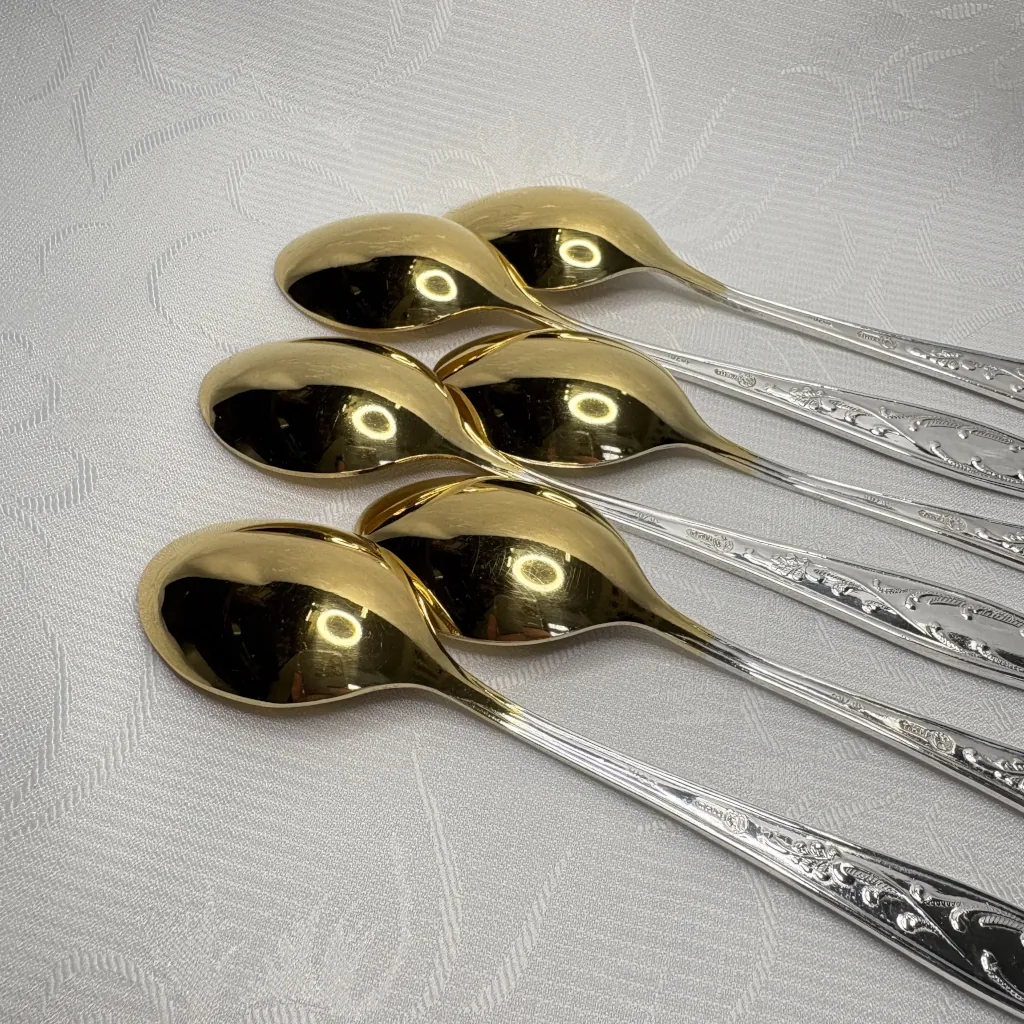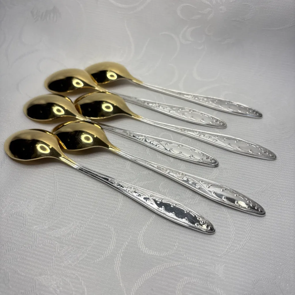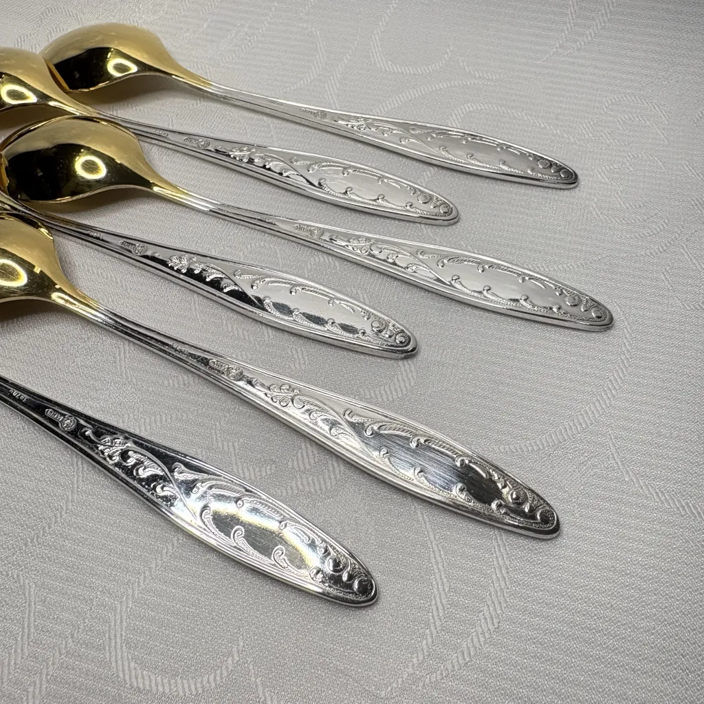 Набор из 6 чайных ложек “Пламя”, мельхиор, серебрение, позолота, Кольчугинский завод цветных металлов, СССР, 1970-1990 гг.