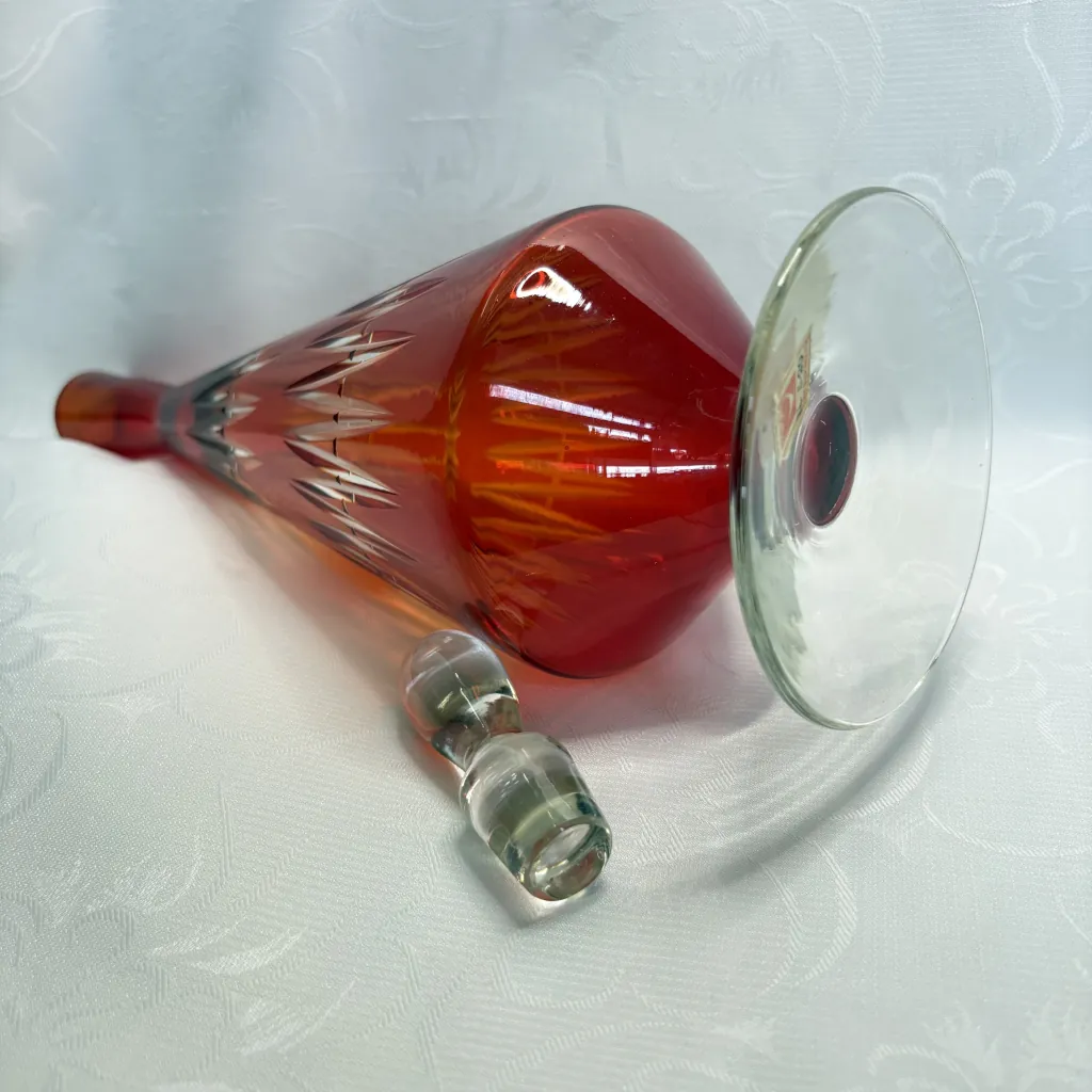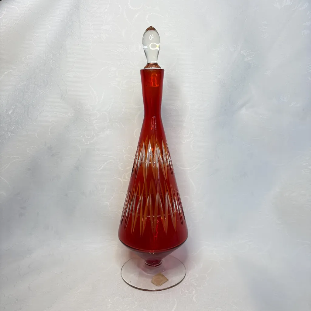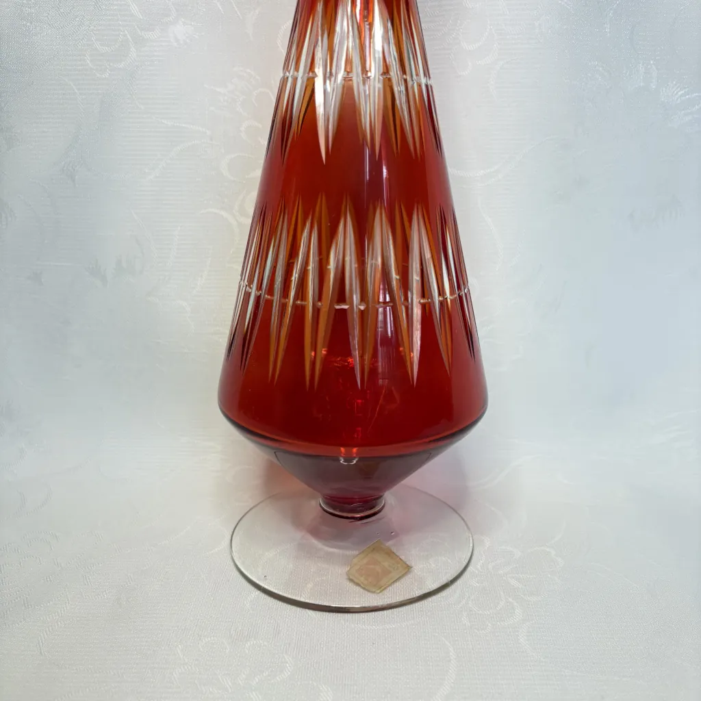 Графин для вина (штоф) с геометрическим декором, накладное цветное стекло, алмазная грань, стеклозавод «Нёман», СССР, 1960-е.
