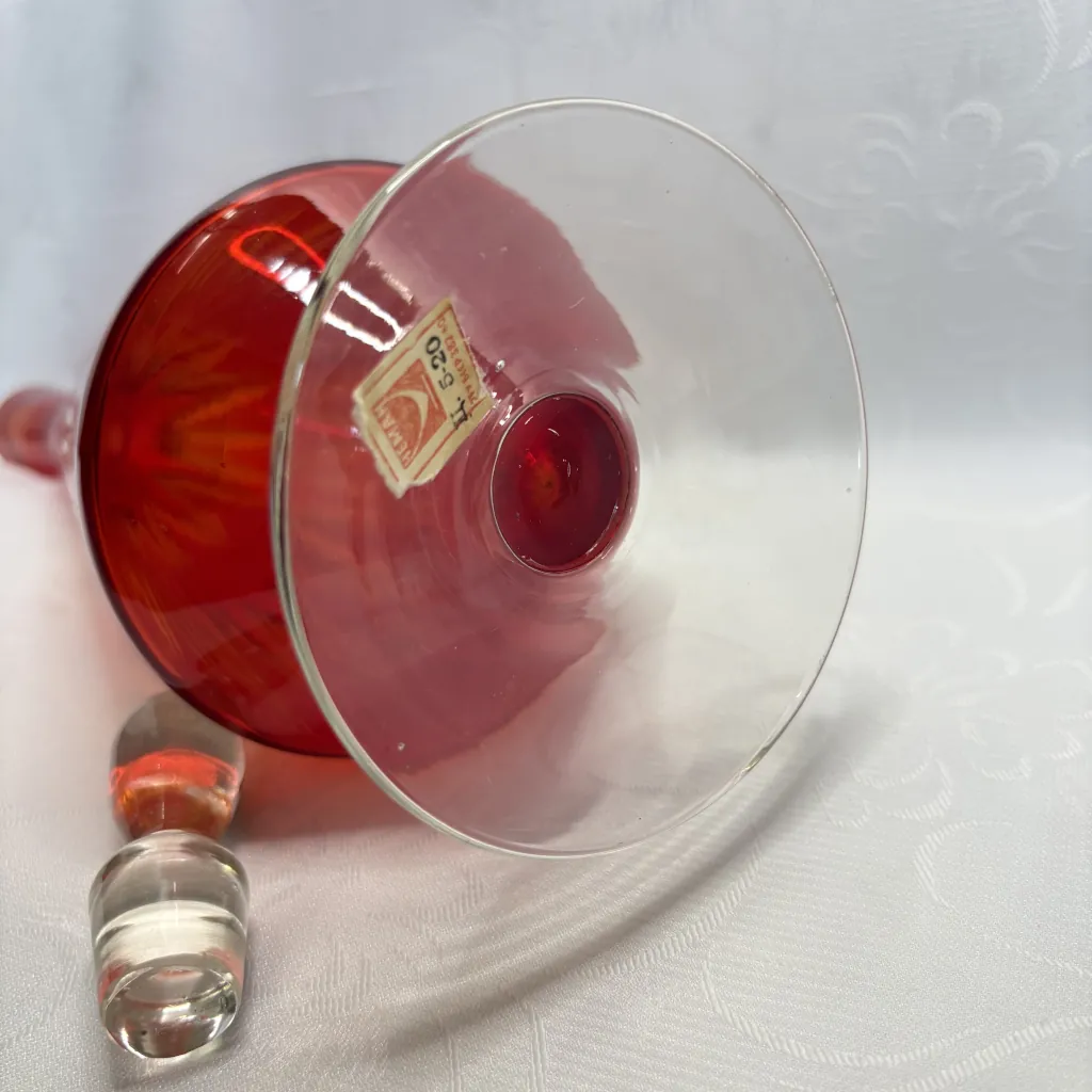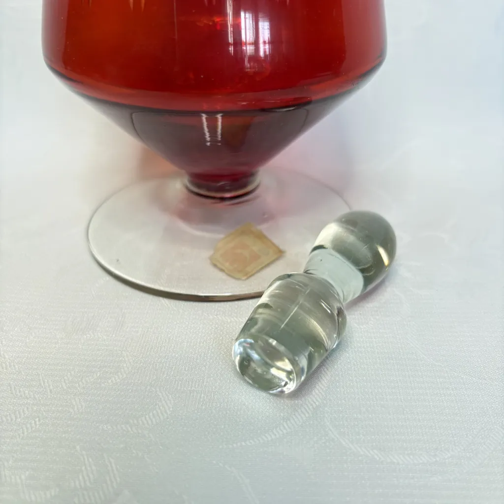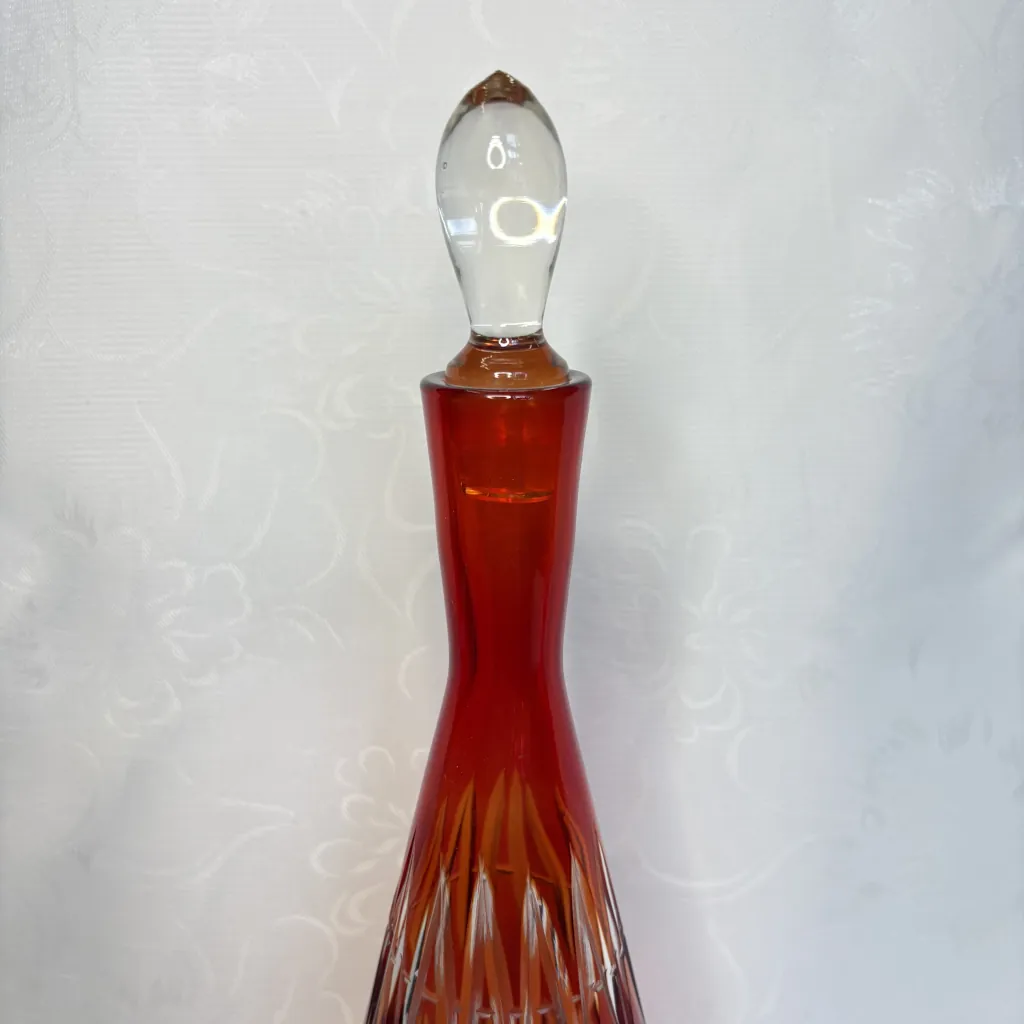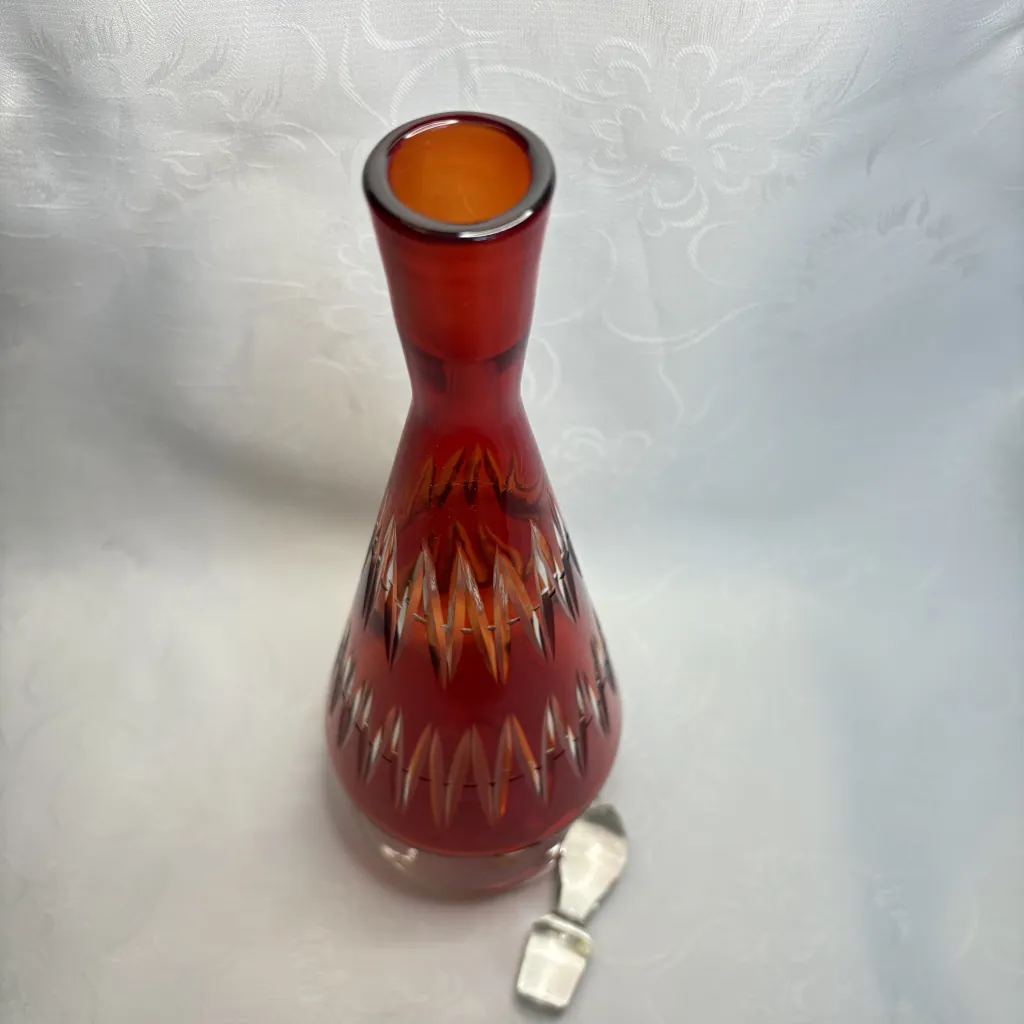Графин для вина (штоф) с геометрическим декором, накладное цветное стекло, алмазная грань, стеклозавод «Нёман», СССР, 1960-е.