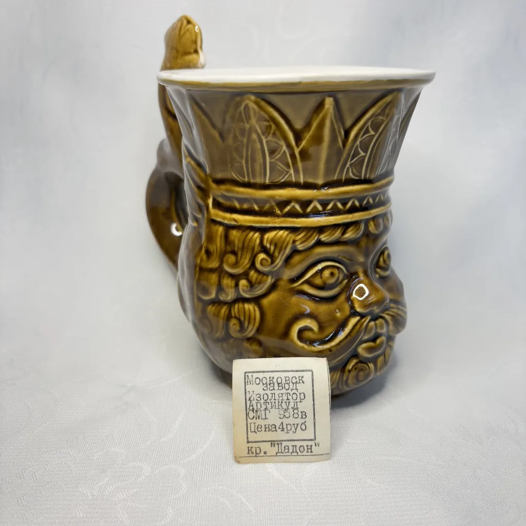 Кружка пивная с фигурной ручкой “Царь Дадон”, керамика, цветные поливы, Московский завод «Изолятор», СССР, 1970-1980гг.