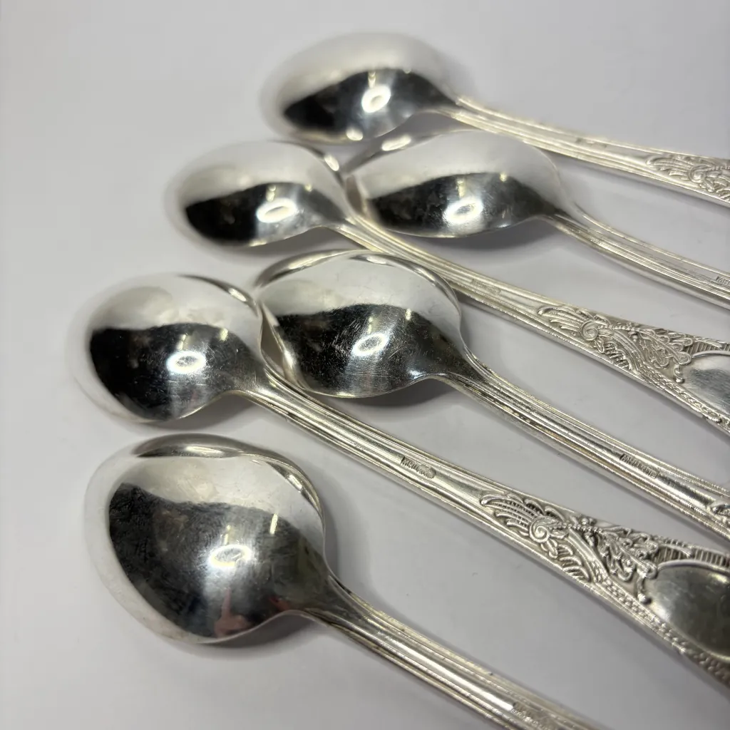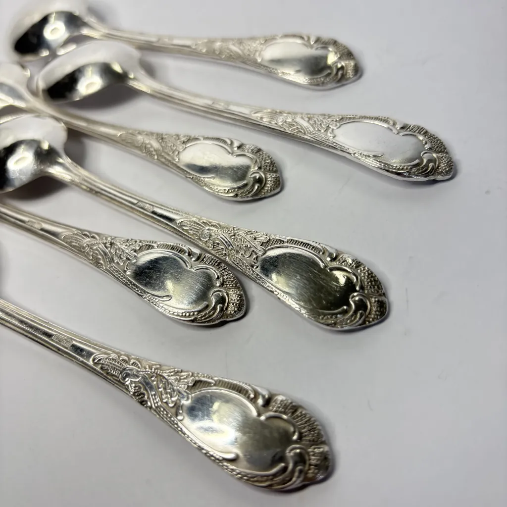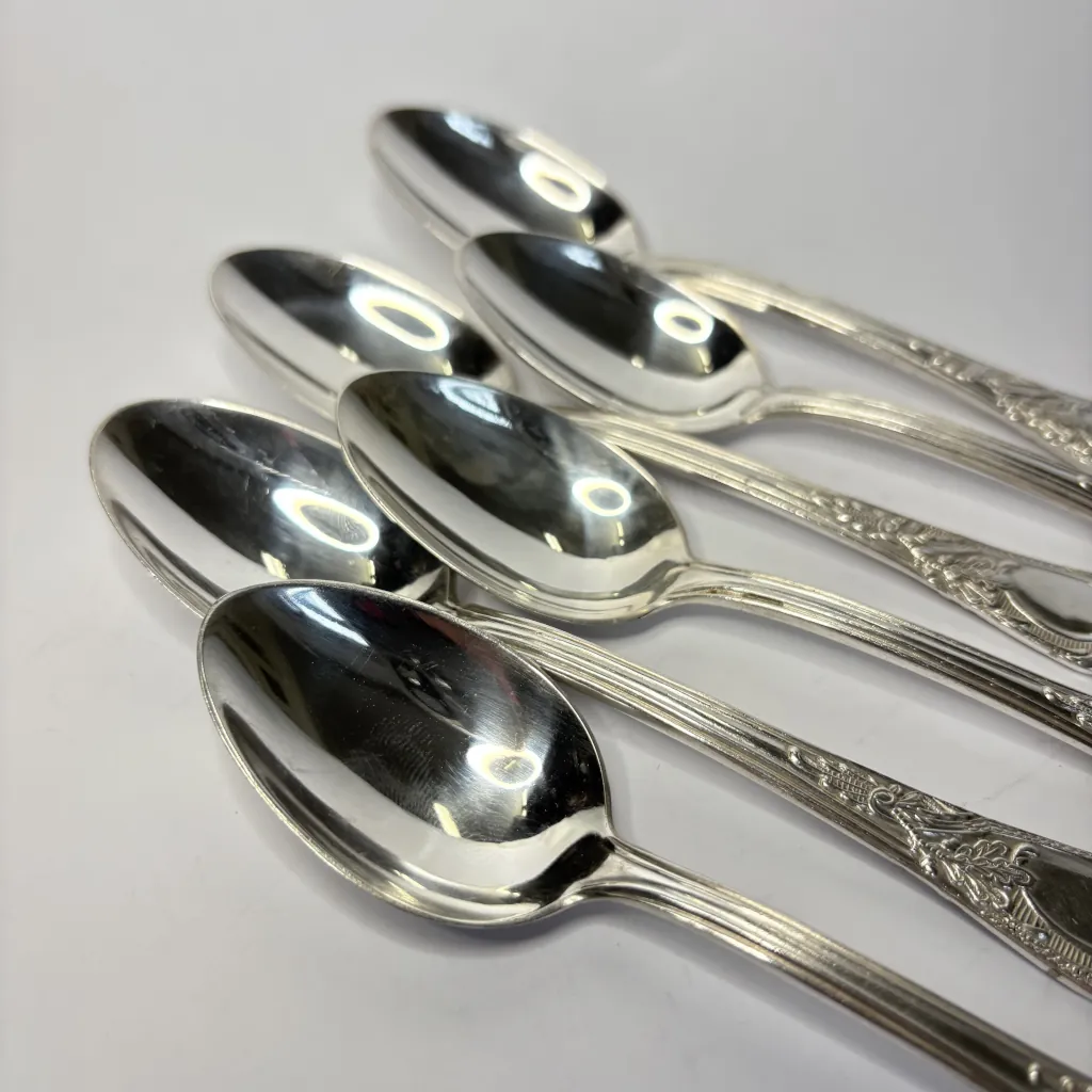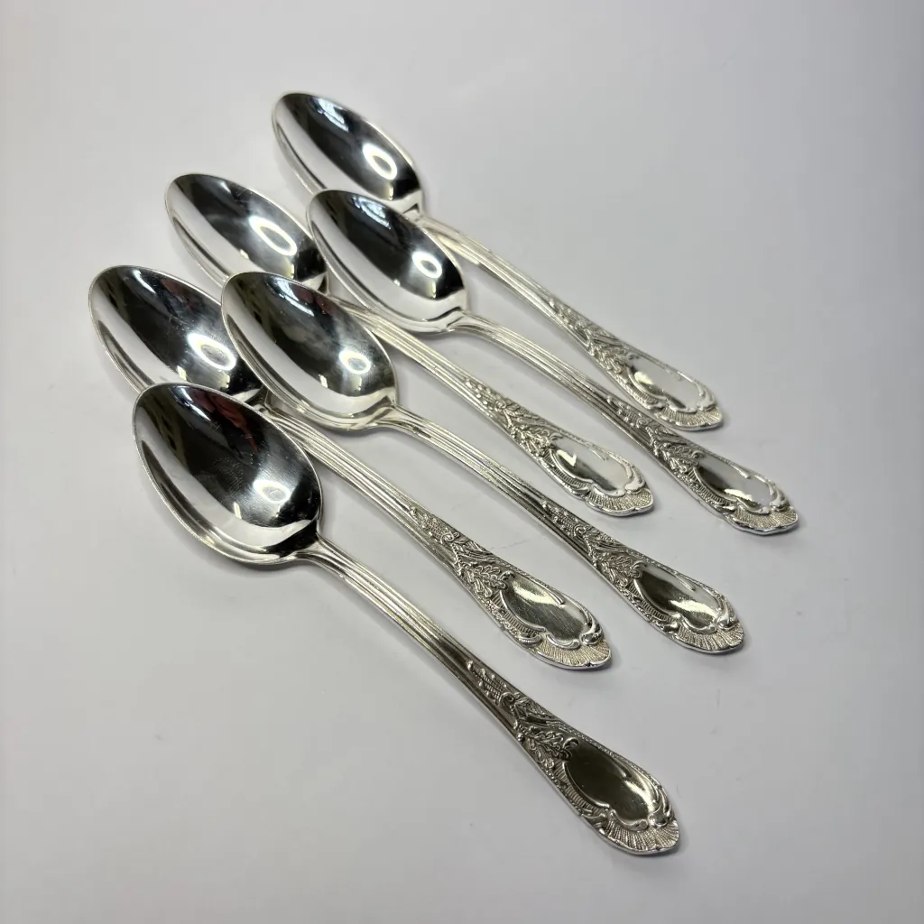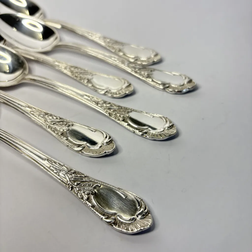 Набор из 6-ти чайных ложек серии “Дубок”, МНЦ (медь-никель-цинк) или «мельхиор» в быту, серебрение, Киевский завод столовых приборов и посуды им. Дзержинского (ЗiД, ЗиД), СССР, 1960-1990гг.