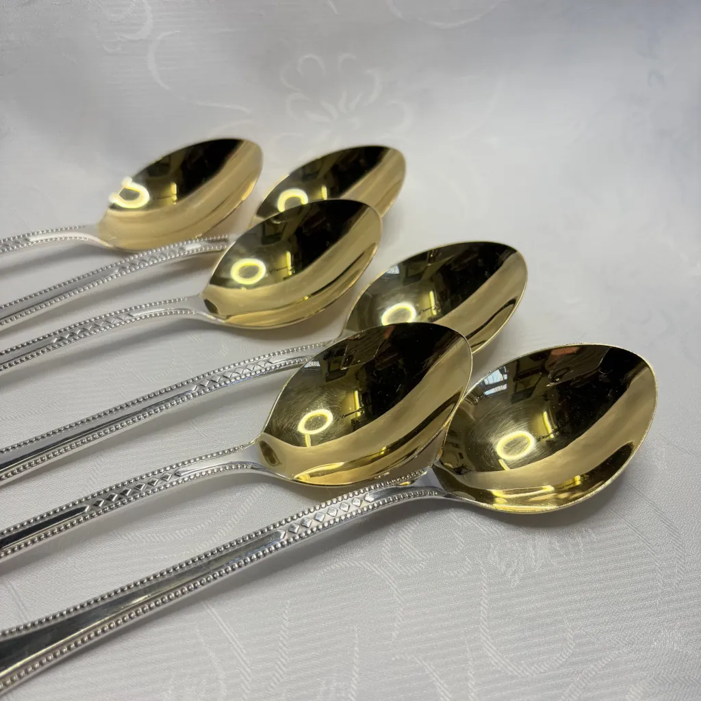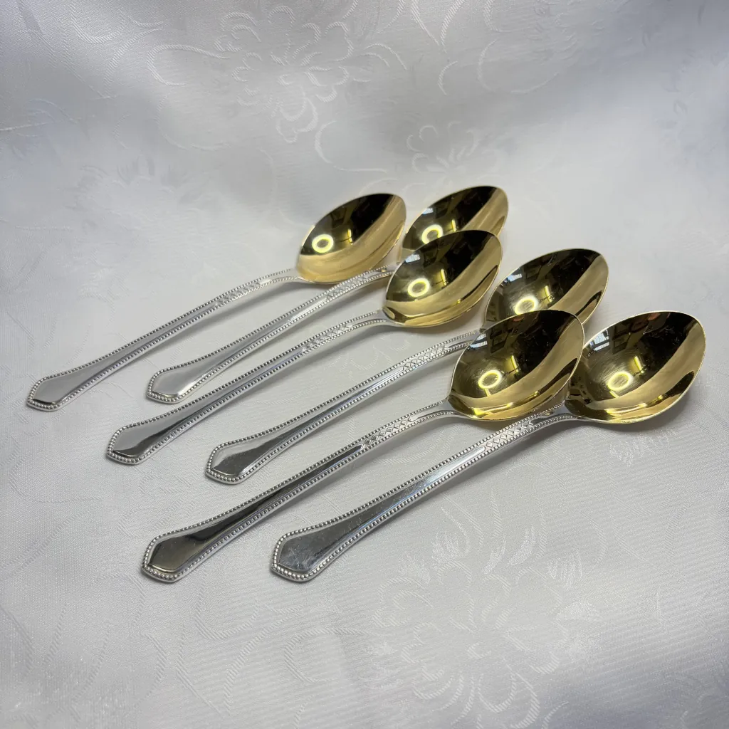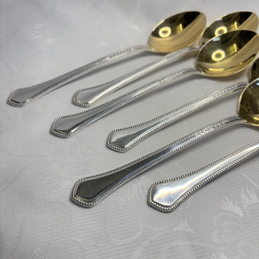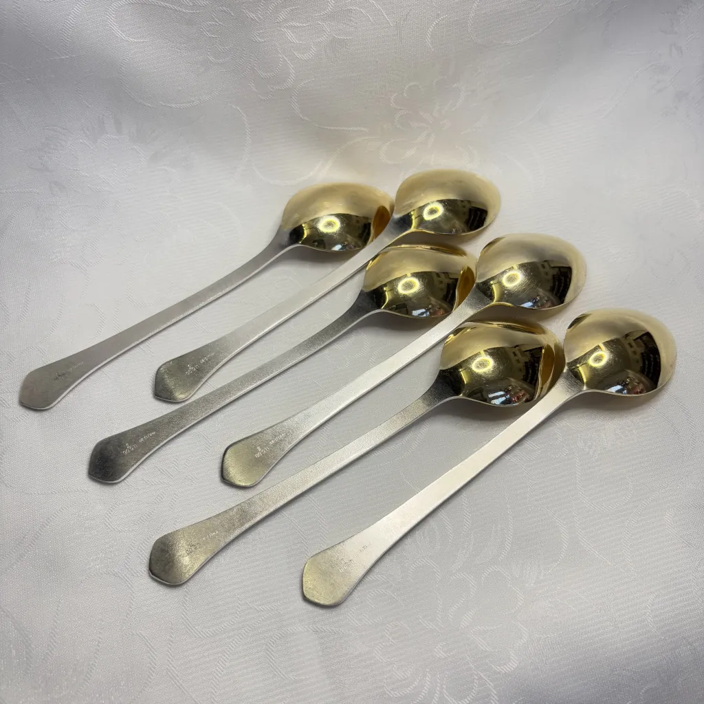 Набор из шести десертных ложек, серия “Элегант”, позолота, МНЦ (медь-никель-цинк), Таллинский ювелирный завод, СССР, 1970-1990 гг.