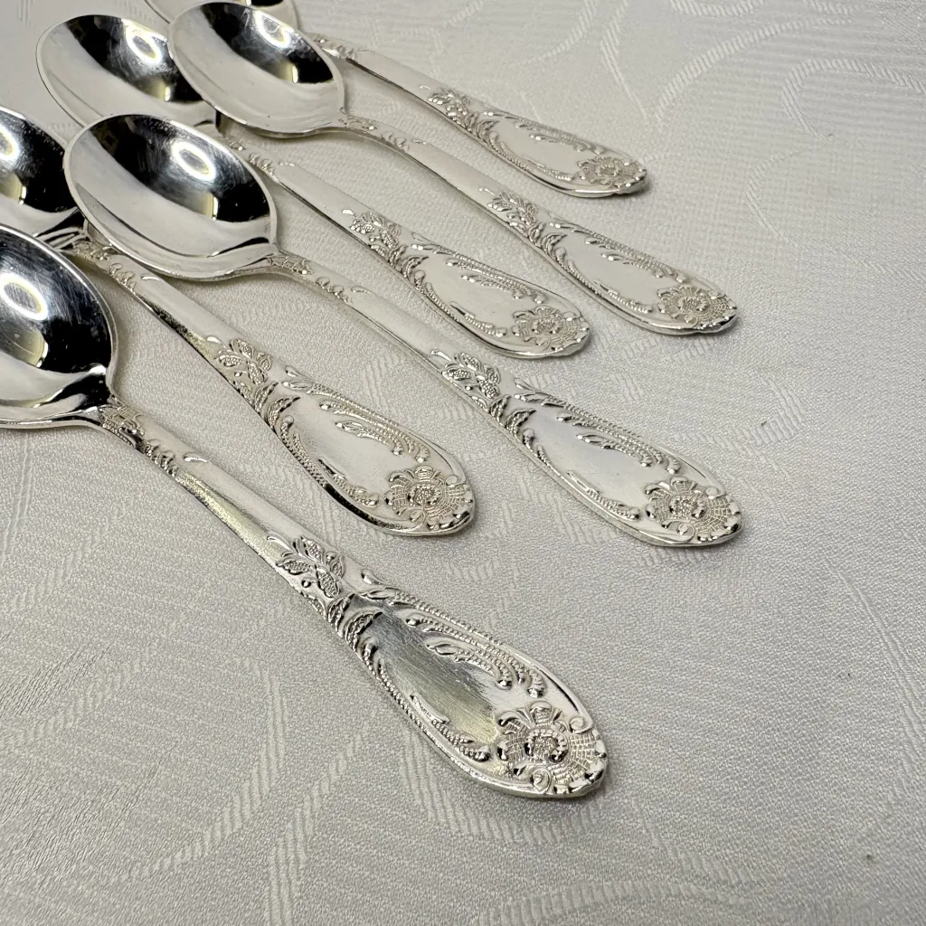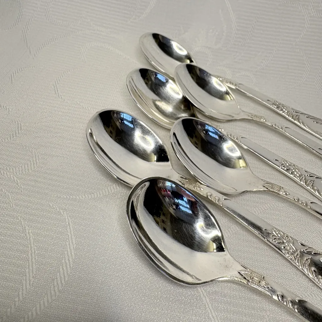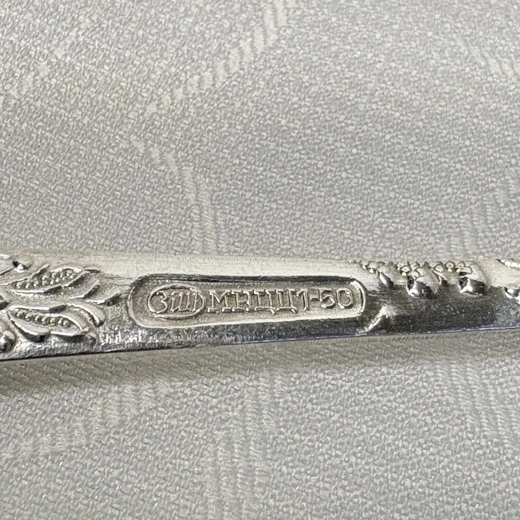 Набор из шести кофейных ложек с растительным декором, МНЦ (медь-никель-цинк), Вольнянский завод столовых приборов им. Шевченко (ЗiШ, ЗиШ), СССР, 1970-1990 гг.