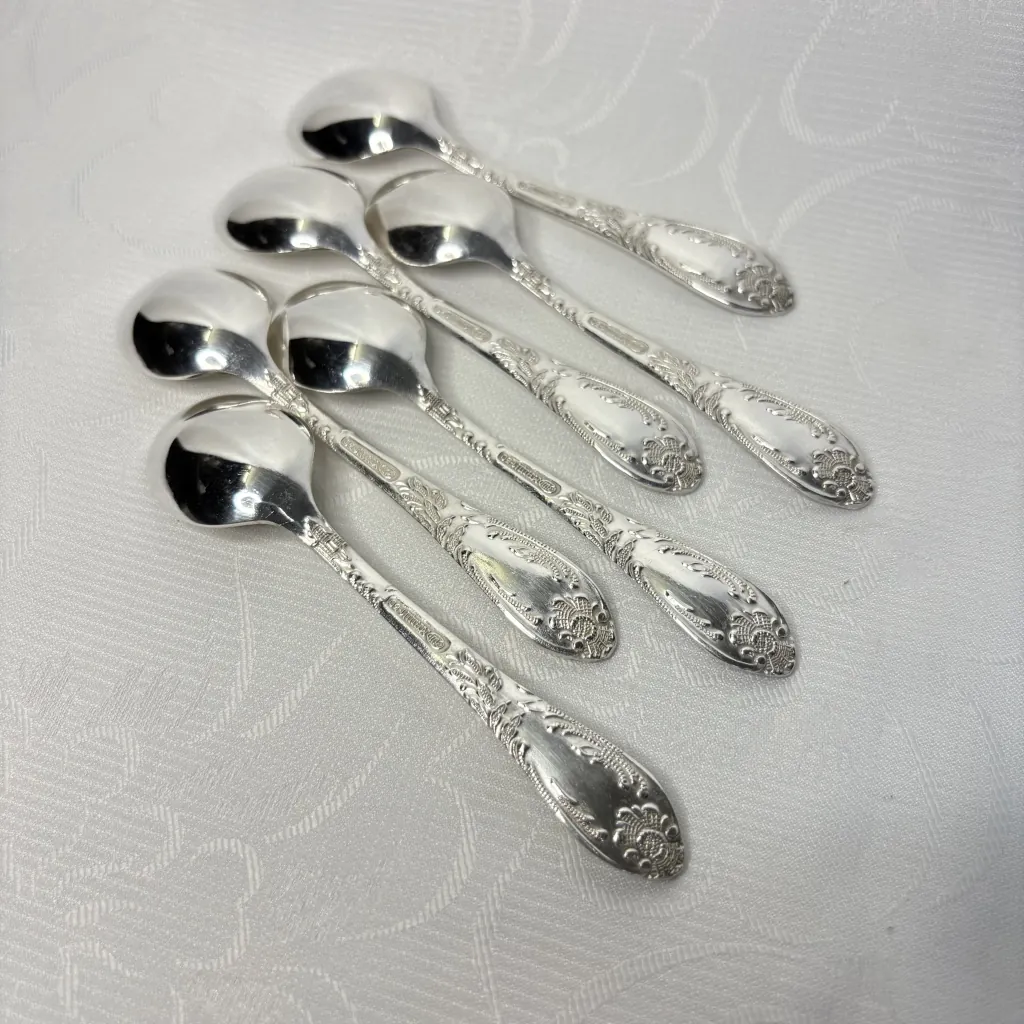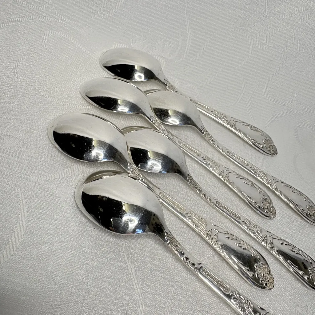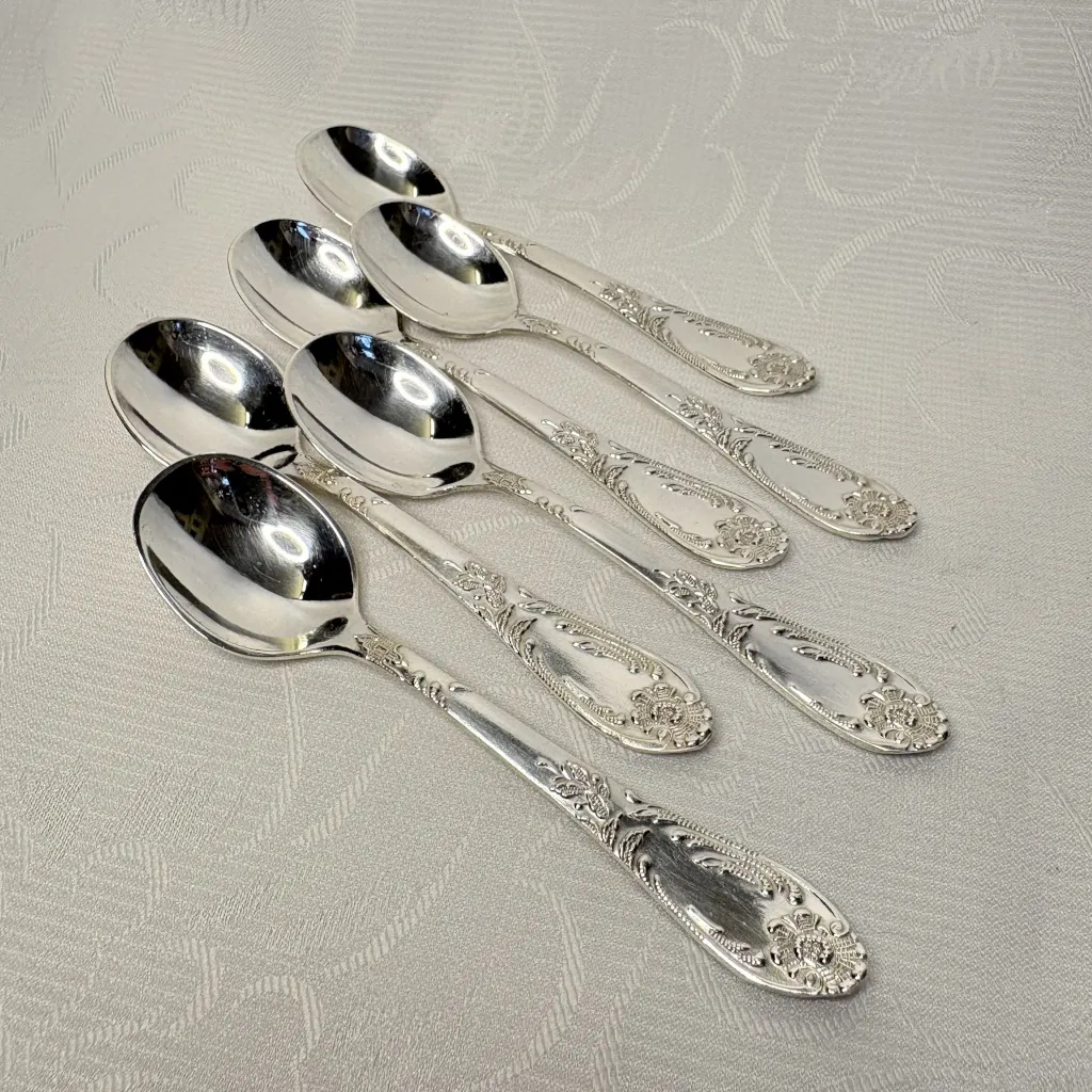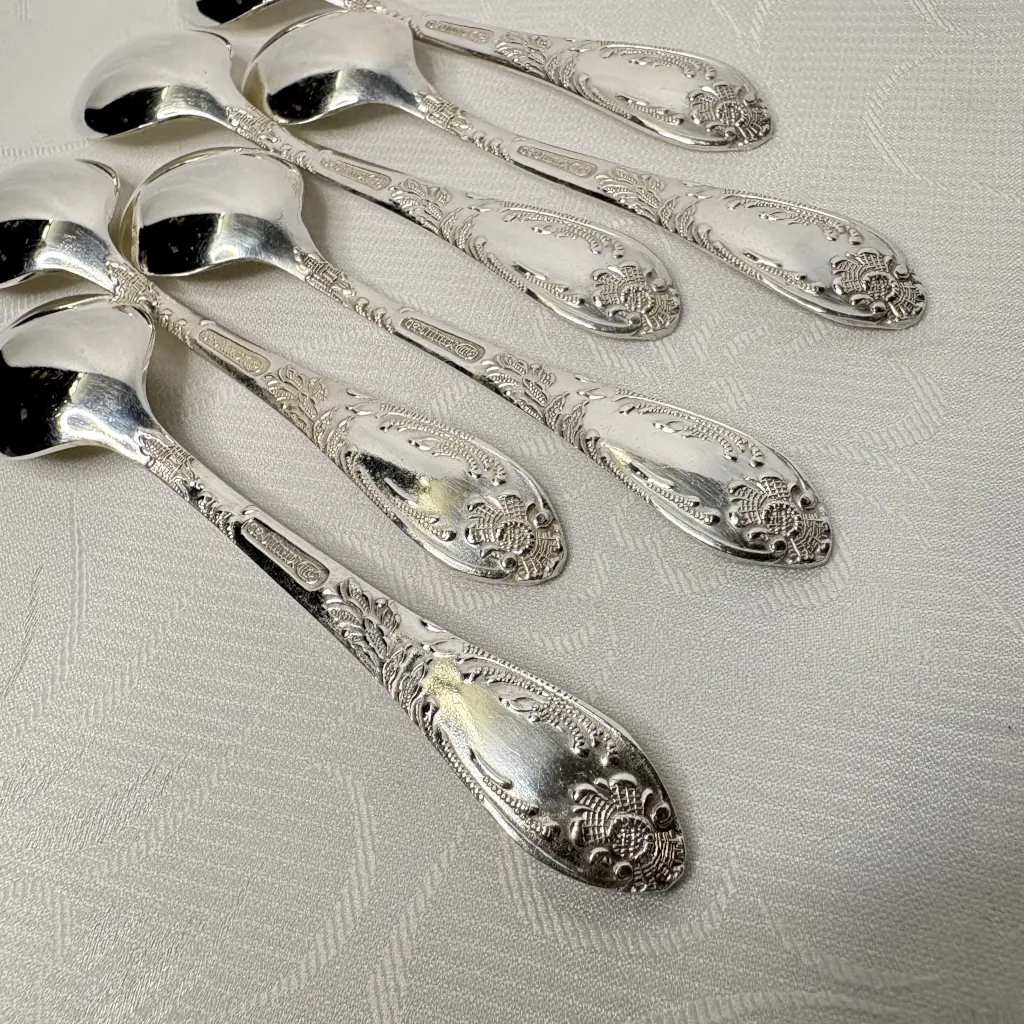 Набор из шести кофейных ложек с растительным декором, МНЦ (медь-никель-цинк), Вольнянский завод столовых приборов им. Шевченко (ЗiШ, ЗиШ), СССР, 1970-1990 гг.