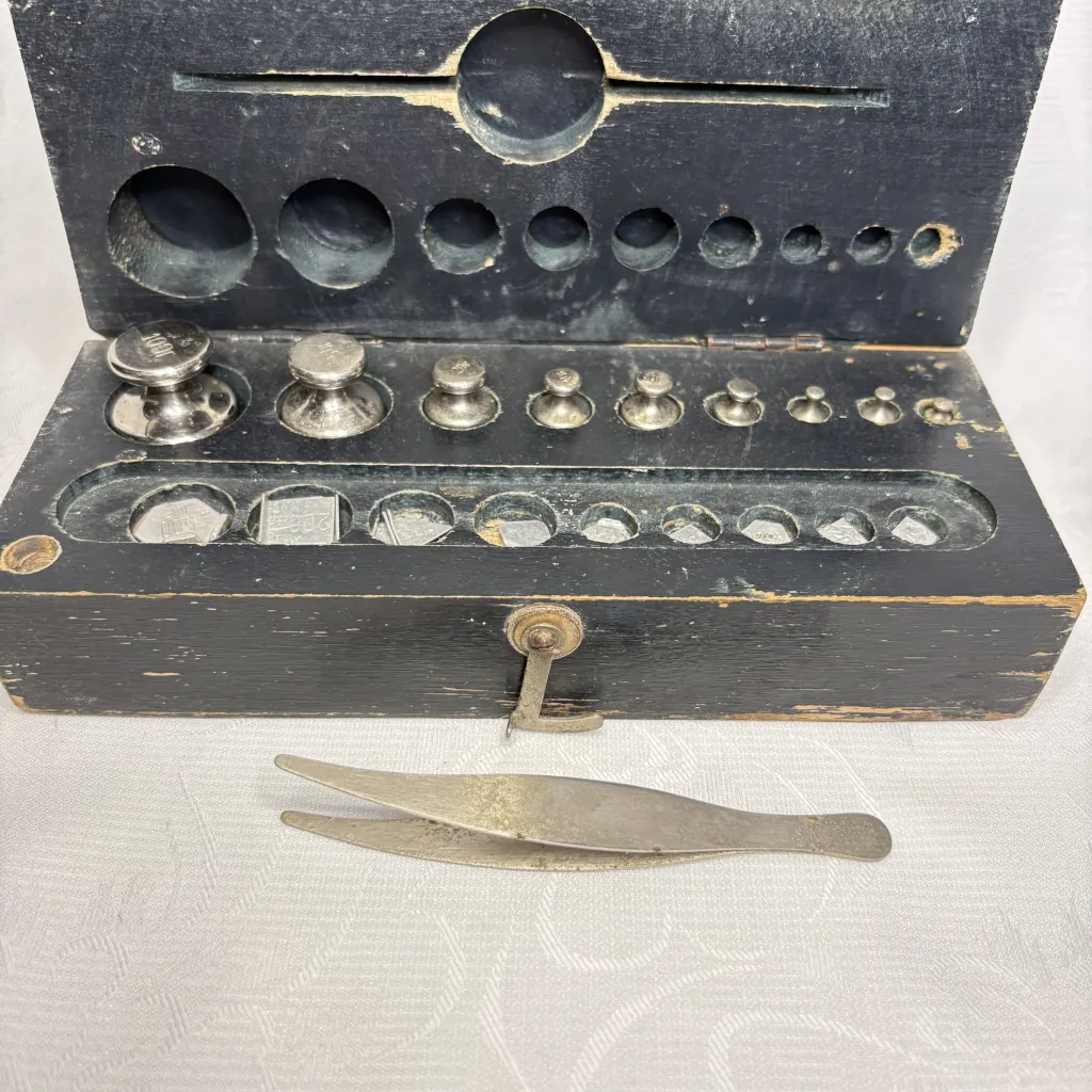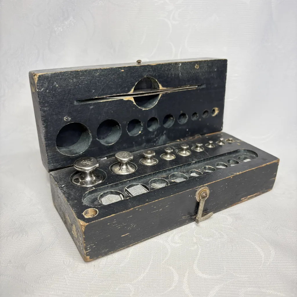 Набор гирь-разновесов, металл, дерево, ГОСМЕТР, Ленинград, СССР, 1960-е.