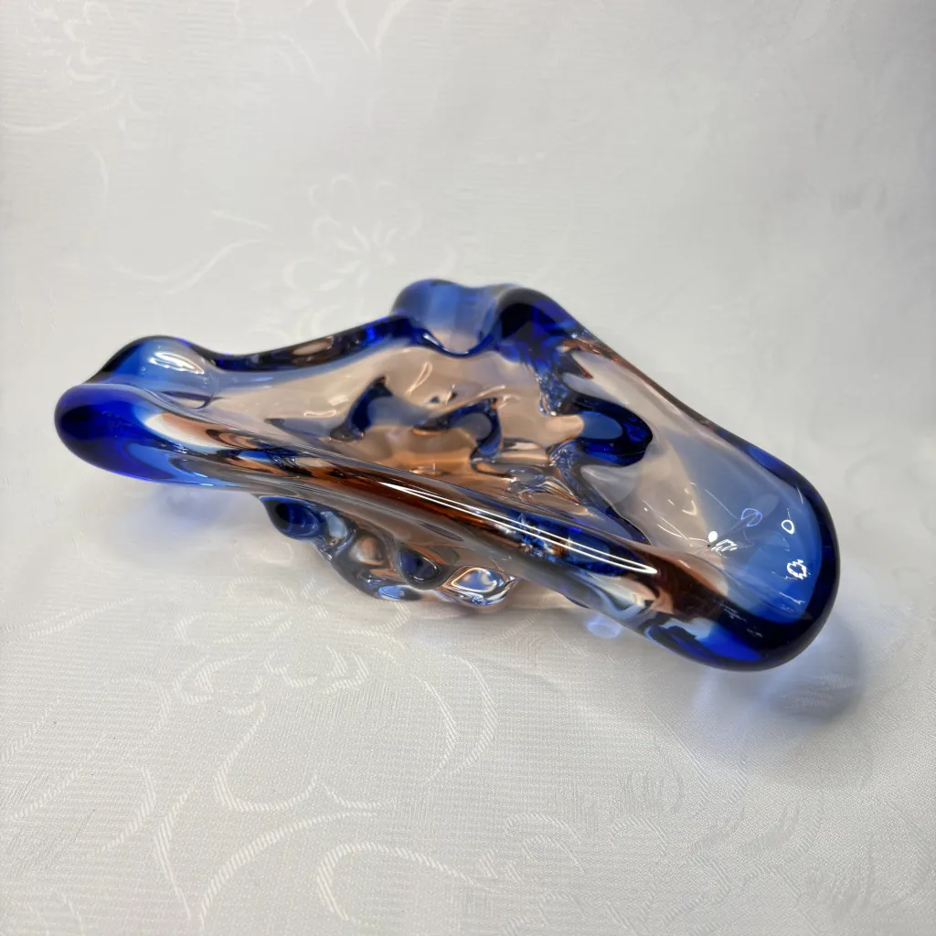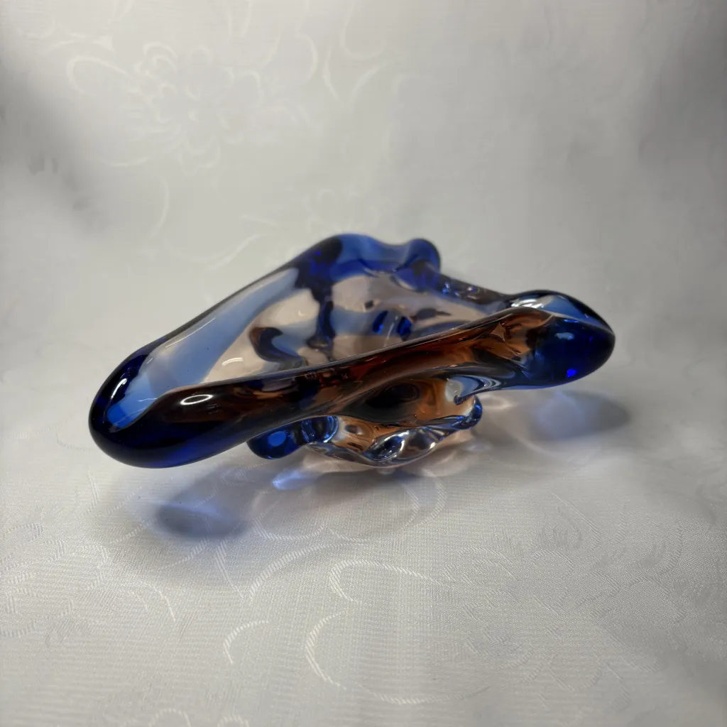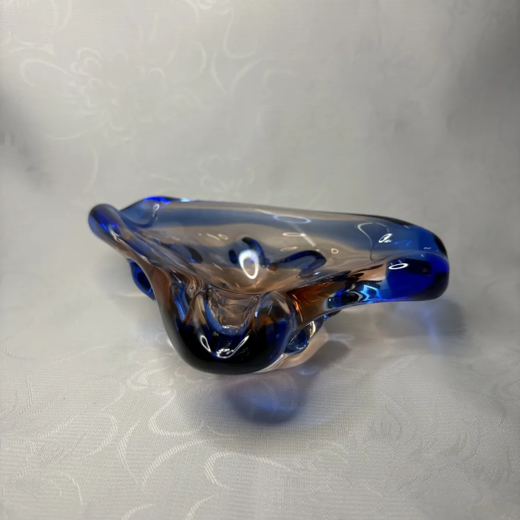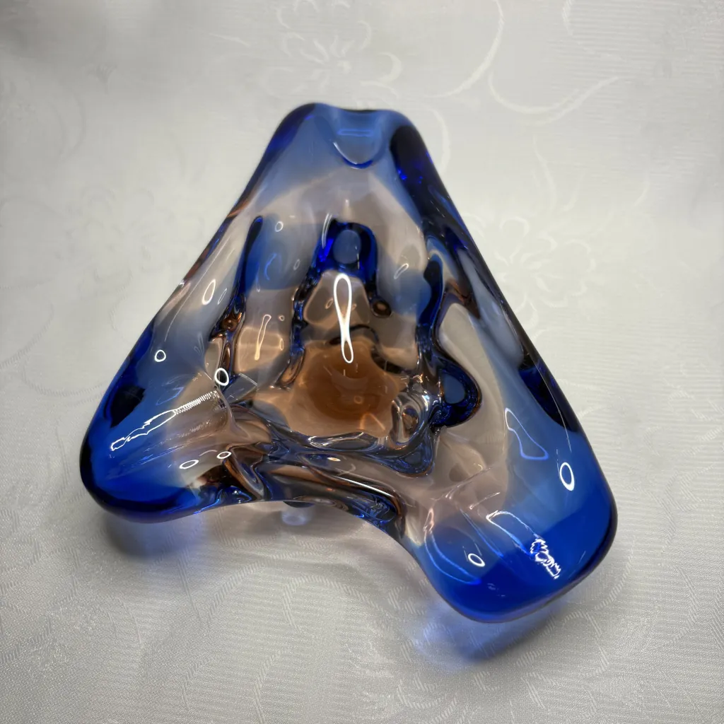 Пепельница винтажная, Мстисовский стекольный завод, стекло, гутная техника, Mstisov Glassworks (Стекольный завод в Мстишов), Чехословакия, 1960-е.