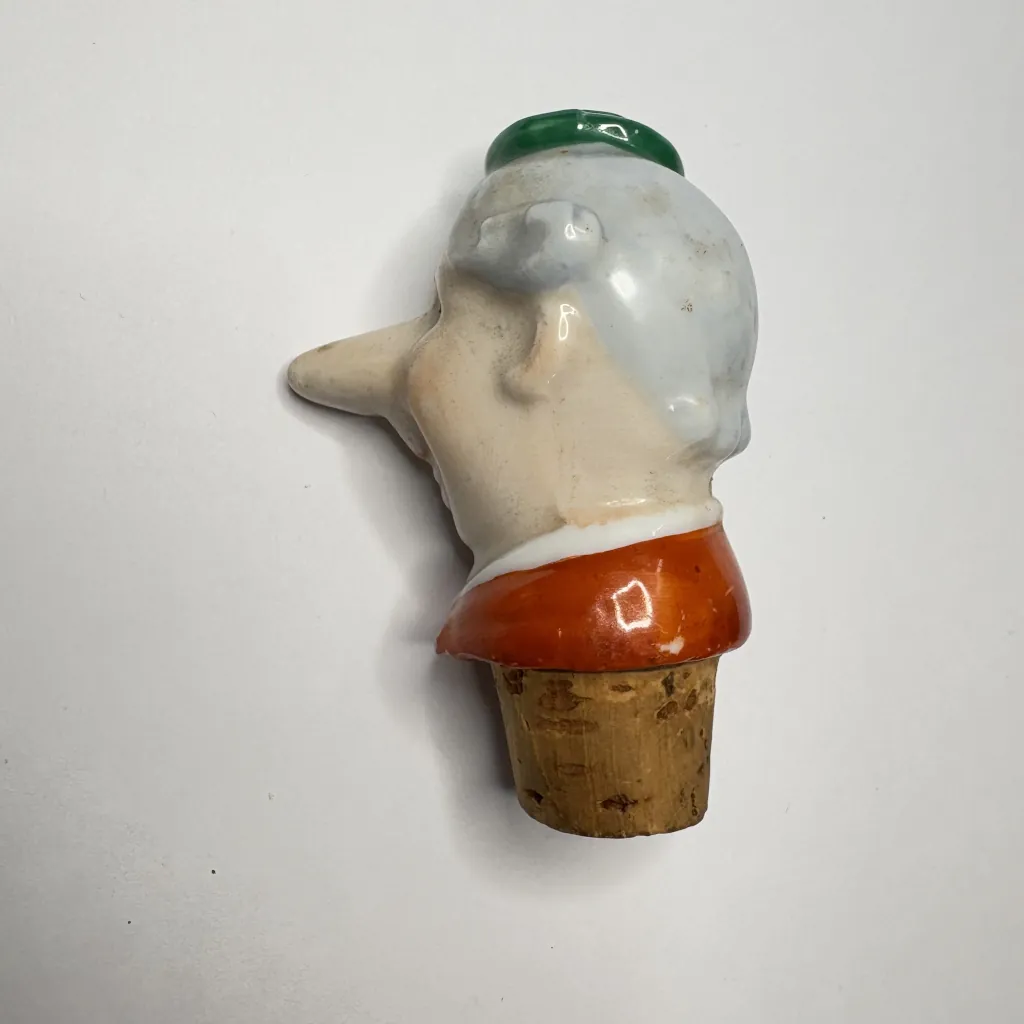 Пробка-наливайка для бутылки (винтажная) в виде мужской головы в котелке, фарфор, роспись, Германия, 1920-1960гг.