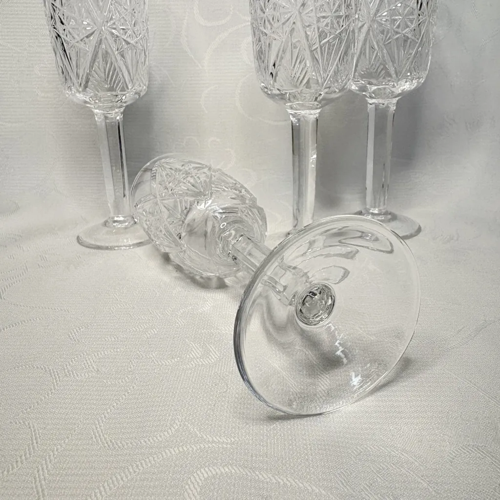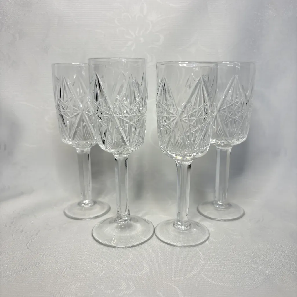 Набор из 4-х рюмок с геометрическим резным декором, хрусталь, алмазная грань, СССР, 1970-1990 гг.