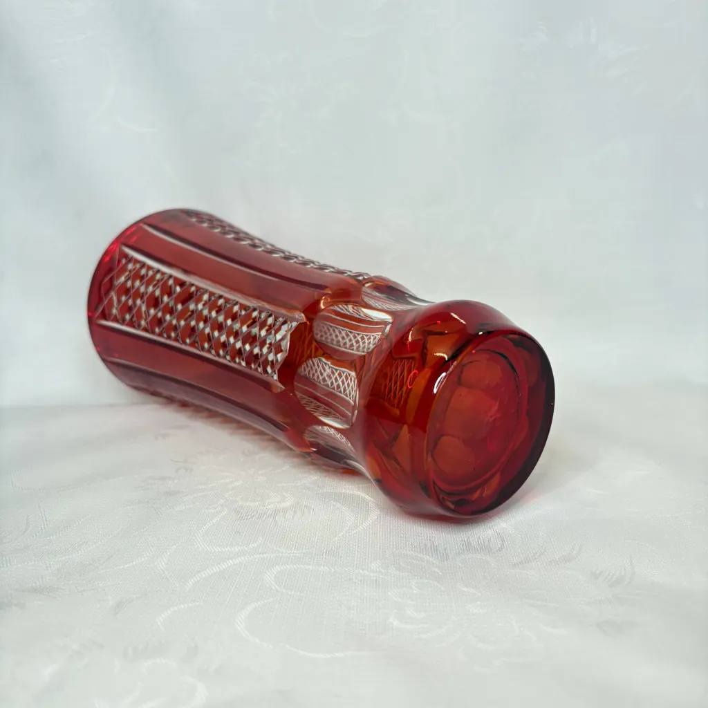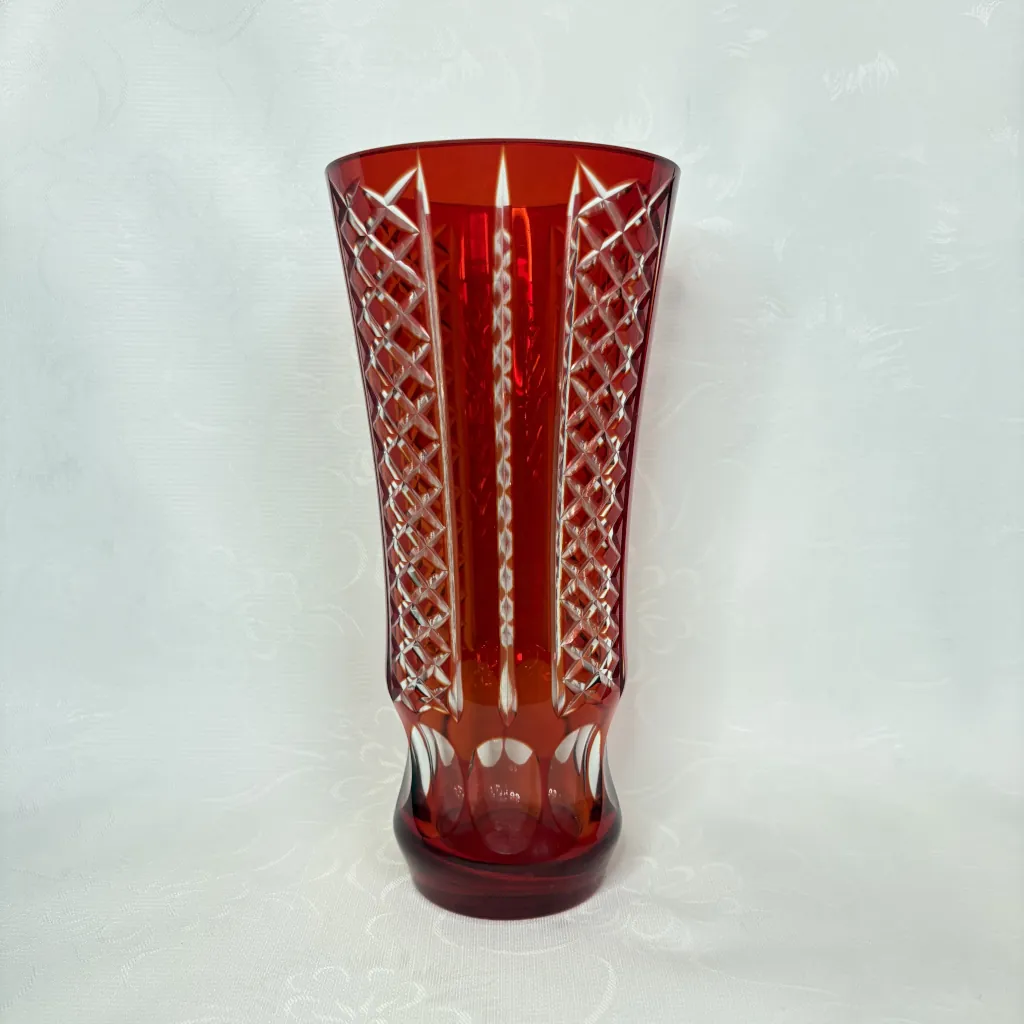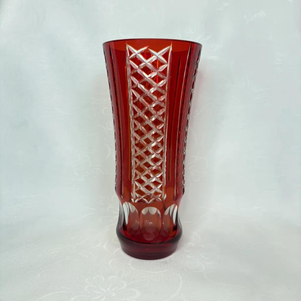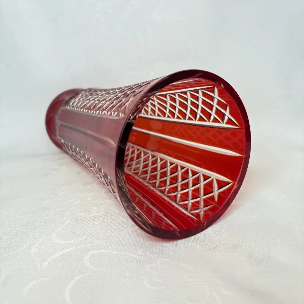 Ваза для цветов с геметрическим декором рубинового оттенка, стекло, СССР, 1960-1990гг.