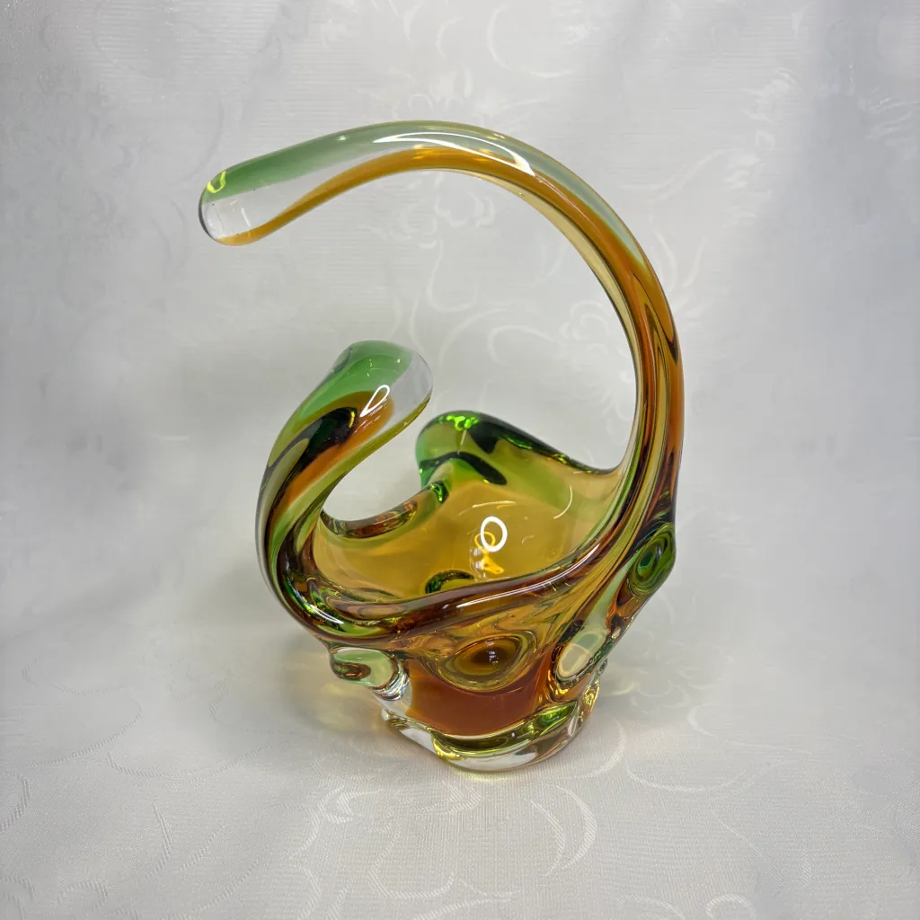 Ваза-конфетница из серии «Ниагара», стекло, гутная техника, Чехословакия, Богемия, стекольный завод «Мстисов» (Mstisov Glass). Автор Карел Земек. 1960-е.