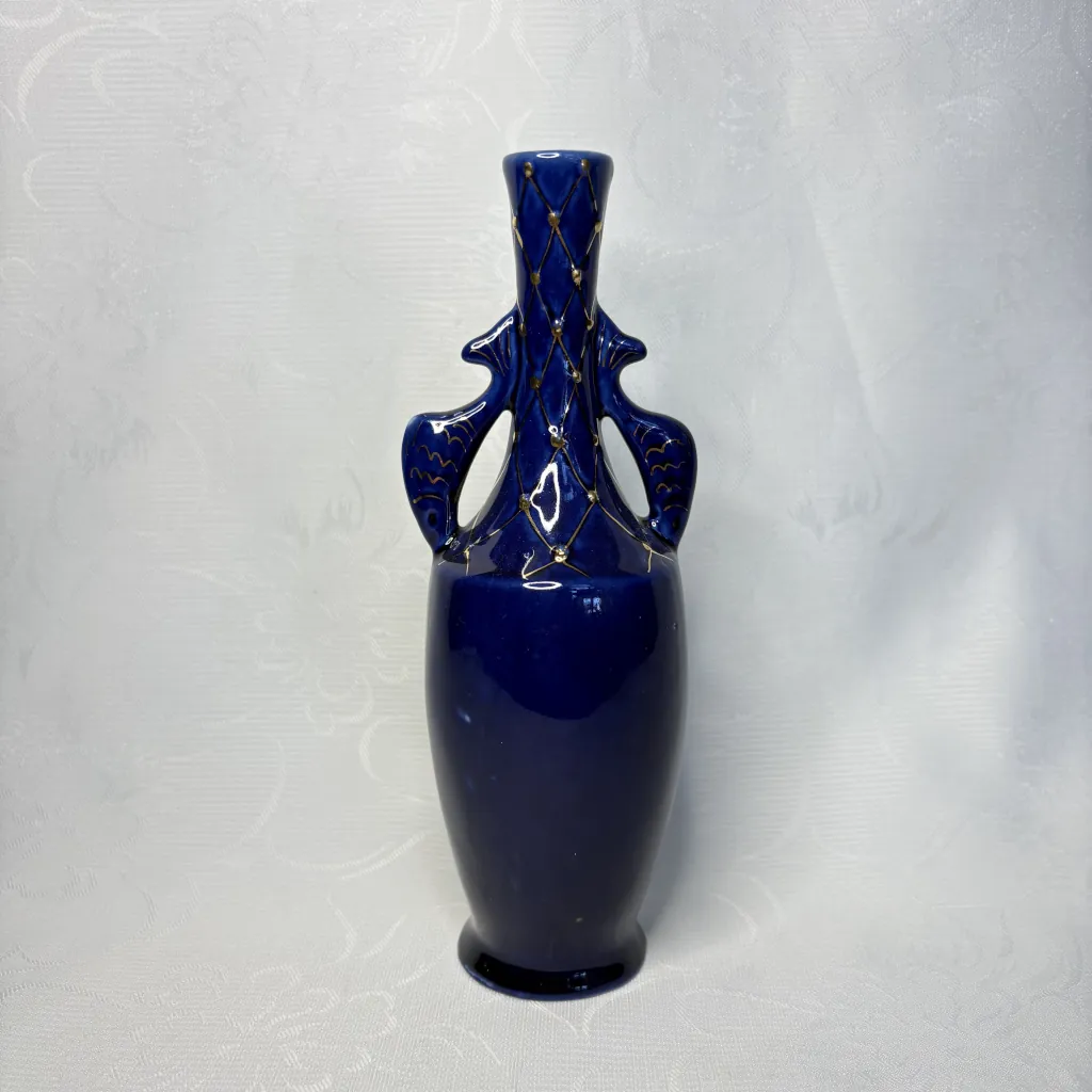Ваза с рыбами, фарфор, крытьё, золочение, роспись, Бронницкий завод фарфоровых изделий «Возрождение», СССР, 1971-1981 гг.