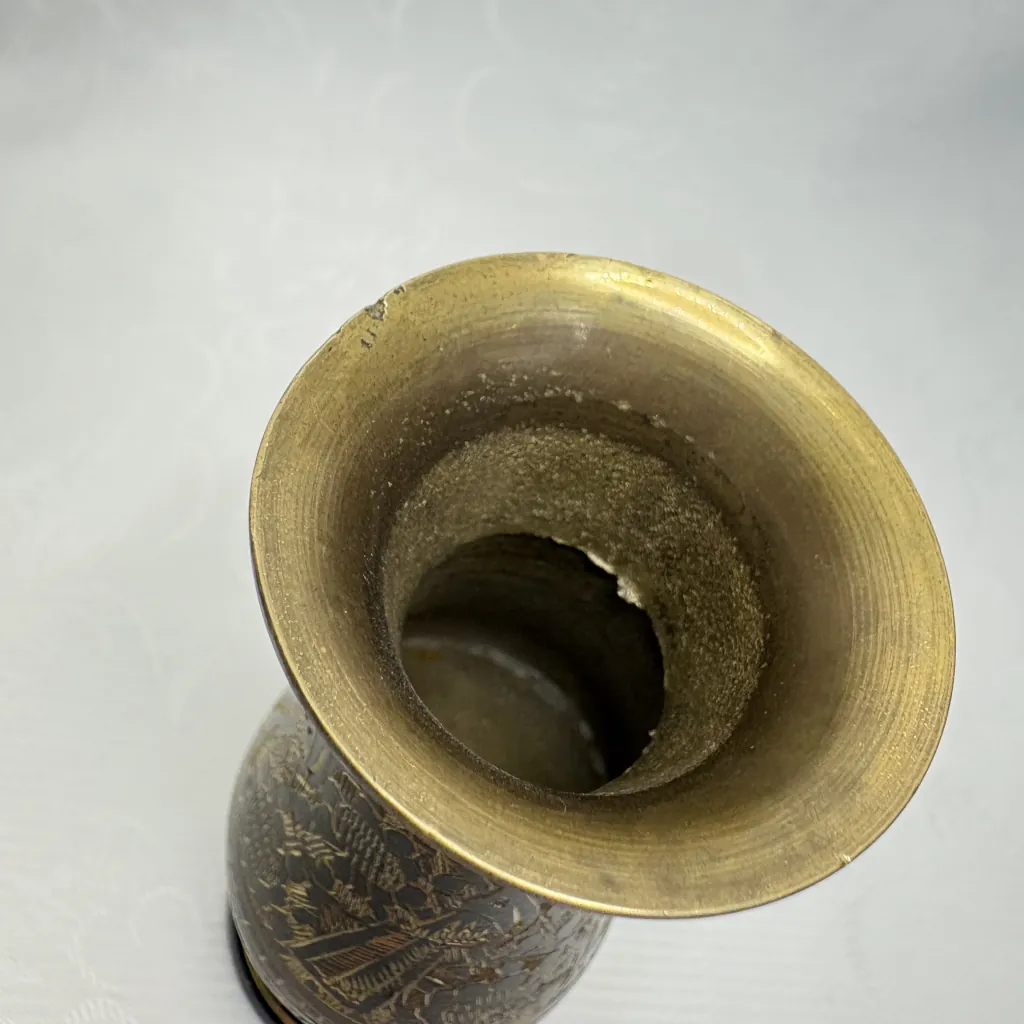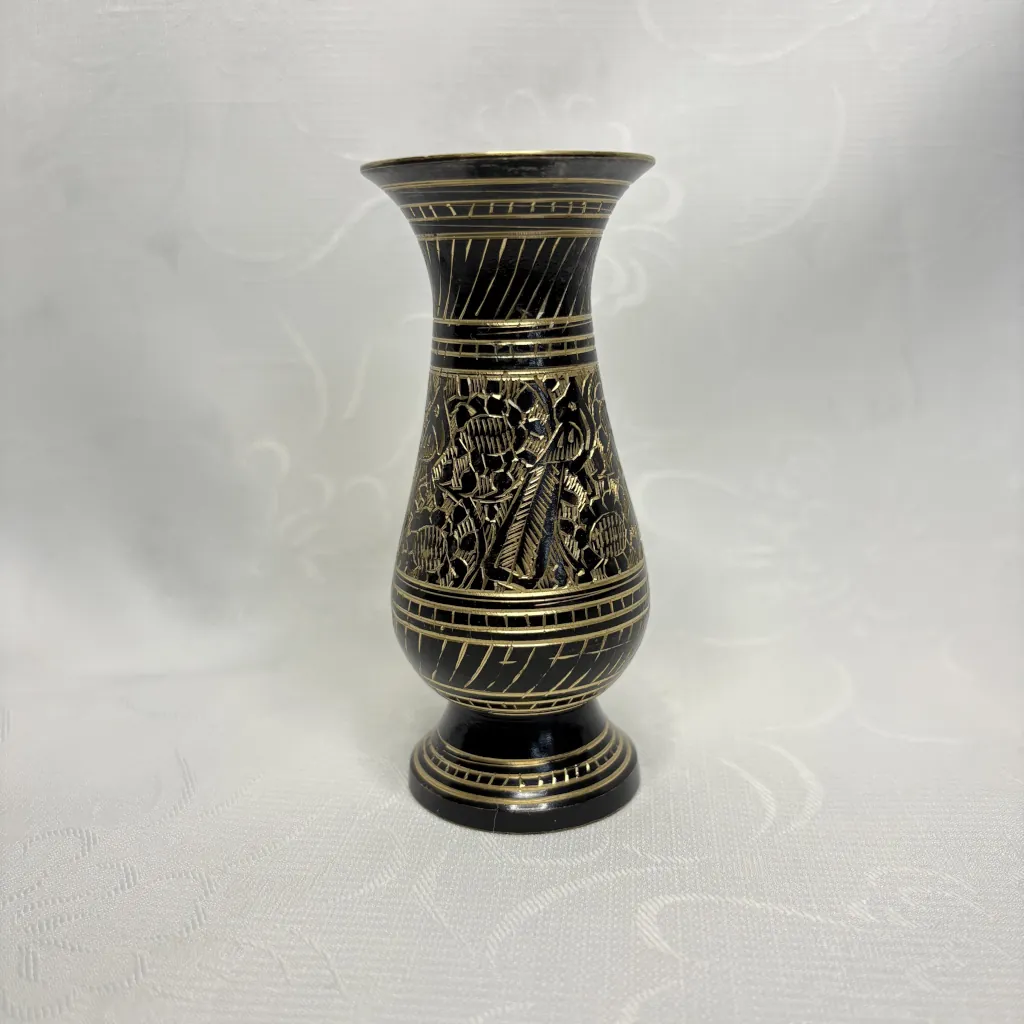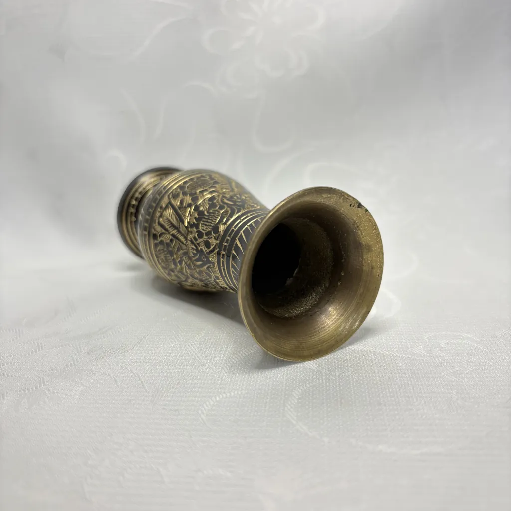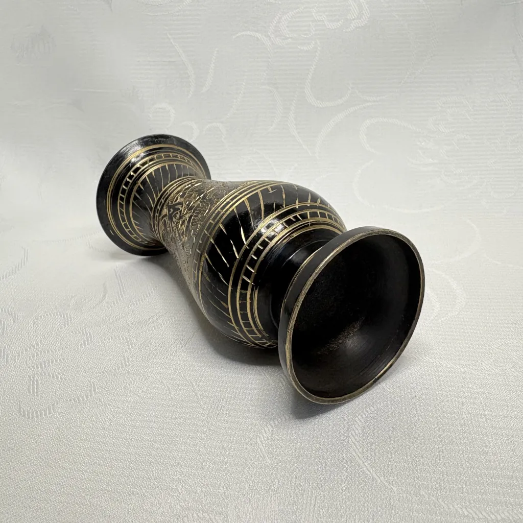 Ваза в восточном стиле, с растительным декором и павлинами, латунь, гравировка, Индия, 1970-1990 гг