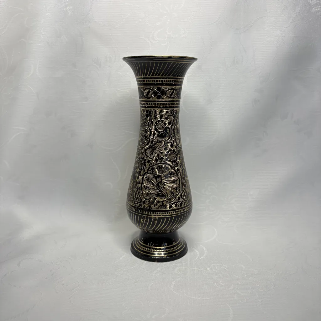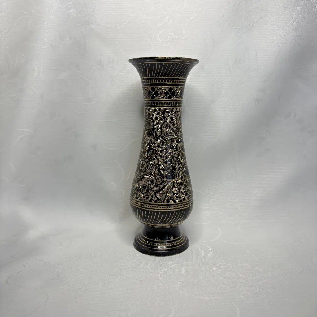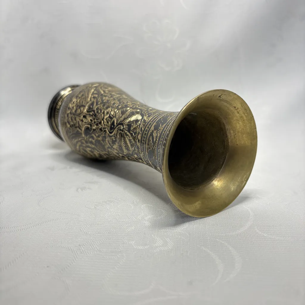 Ваза в восточном стиле, украшенная растительным декором и павлинами, латунь, гравировка, Индия, 1970-1990 гг.