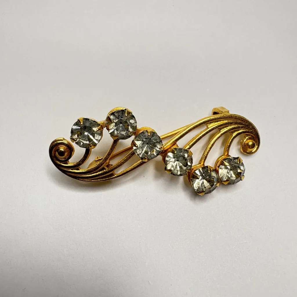 Винтажная брошь со вставками, металл, золочение, стекло, СССР, 1980г.